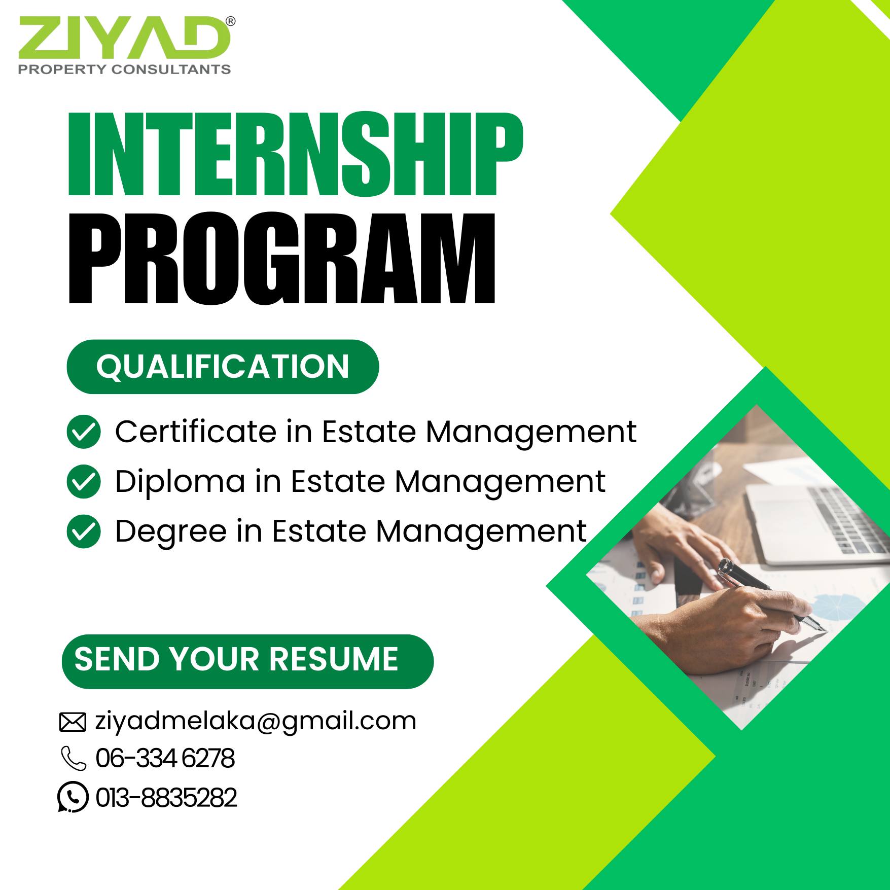 For IPT/IPTA students who are interested in undergoing training at Ziyad Property Consultants (Melaka) can email their resume and related documents to: